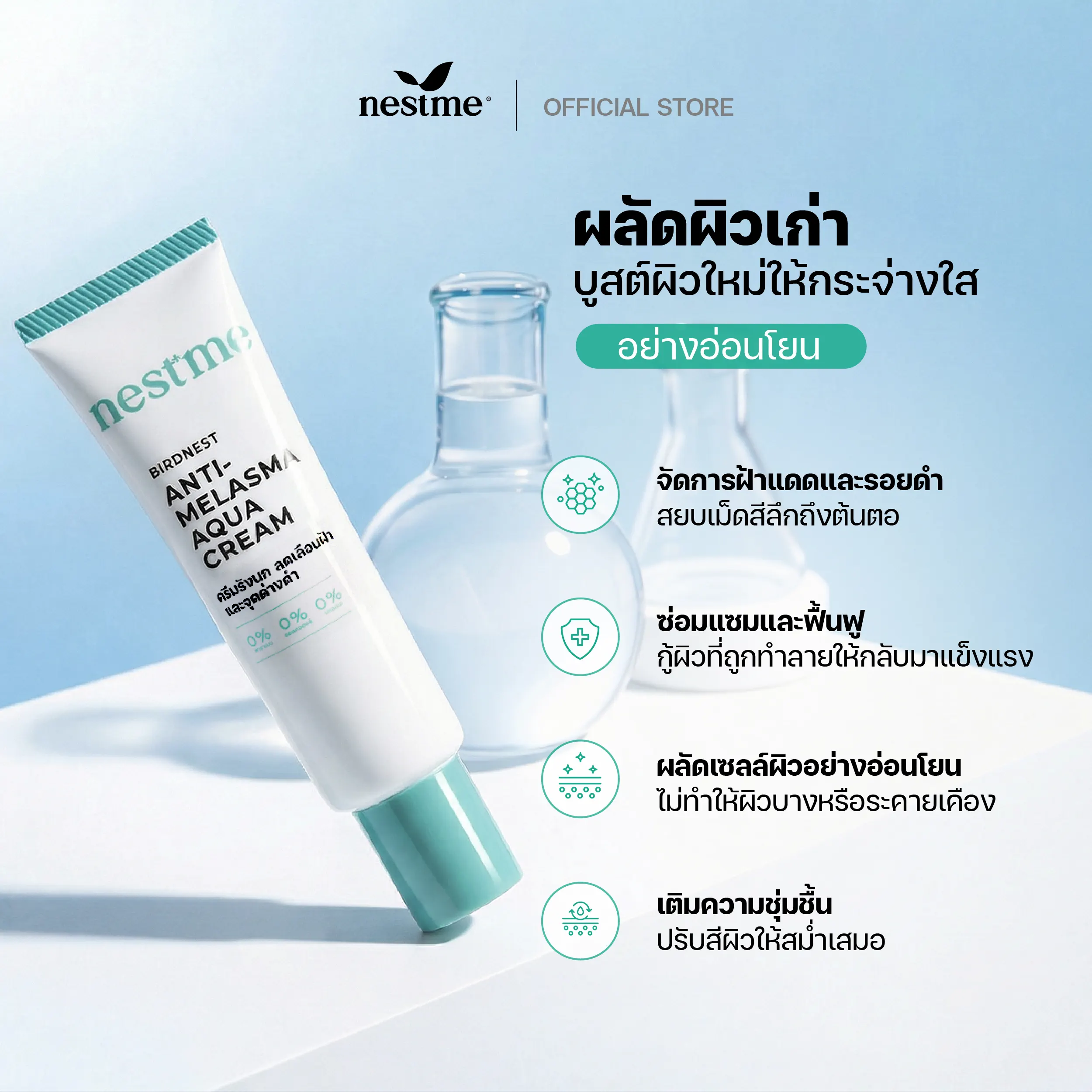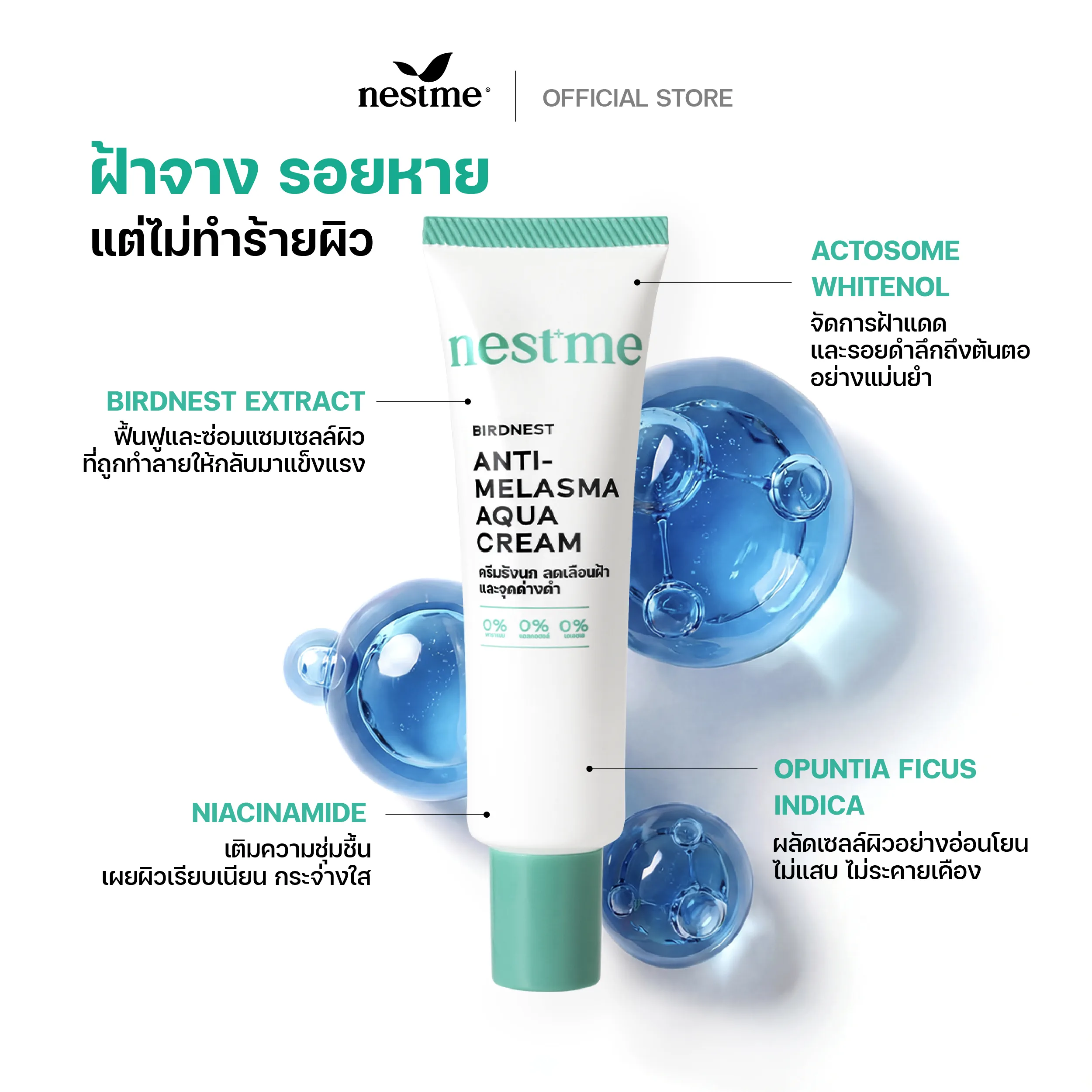 ครีมรังนก ลดเลือนฝ้ารอยดำ ด้วยส่วนประกอบจาก แอคโตโซม ไวทีนอล เพิ่มประสิทธิภาพโดยใช้เทคนิคเอนแคปซูเลชั่น ผสานคุณค่าสารสกัดจากดอกกระบองเพชรประเทศฝรั่งเศส ผลัดเซลล์ผิวอย่างอ่อนโยน ไม่ก่อให้เกิดการระคายเคือง พร้อมวิตามินบี 3 เพิ่มความชุ่มชื้นให้กับผิว ลดปัญหาฝ้า รอยดำสิวดูจางลง เผยผิวกระจ่างใส เรียบเนียนอย่างเป็นธรรมชาติ