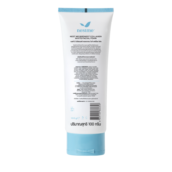 โฟมล้างหน้ารังนก ทำความสะอาดล้ำลึกขจัดสิ่งสกปรก อุดมไปด้วยคอลลาเจนจากปลาทะเลน้ำลึก สารสกัดจากรังนกแท้ ช่วยให้ผิวเนียนนุ่มชุ่มชื้น และวิตามินซีอนุพันธ์เสถียร