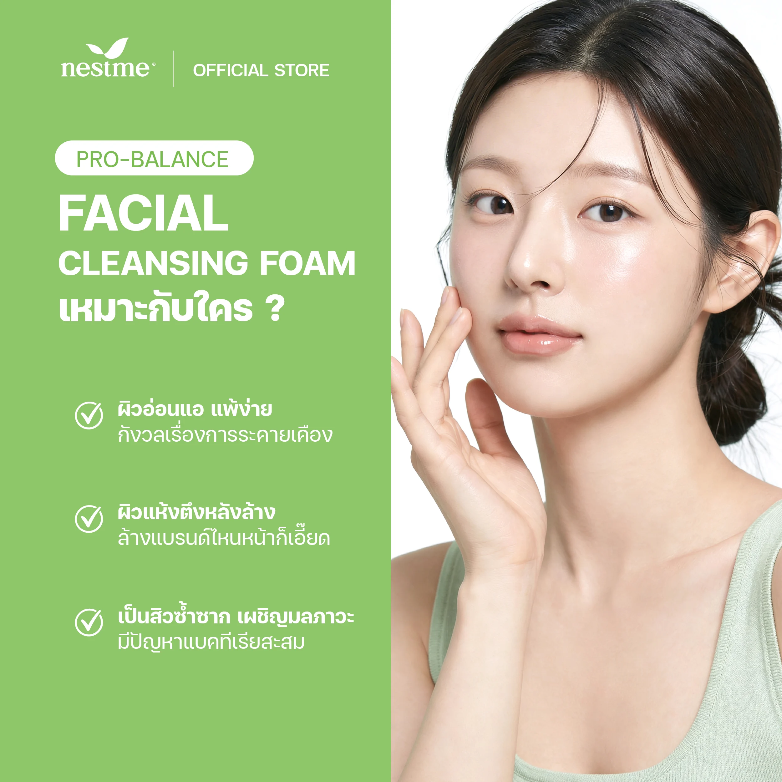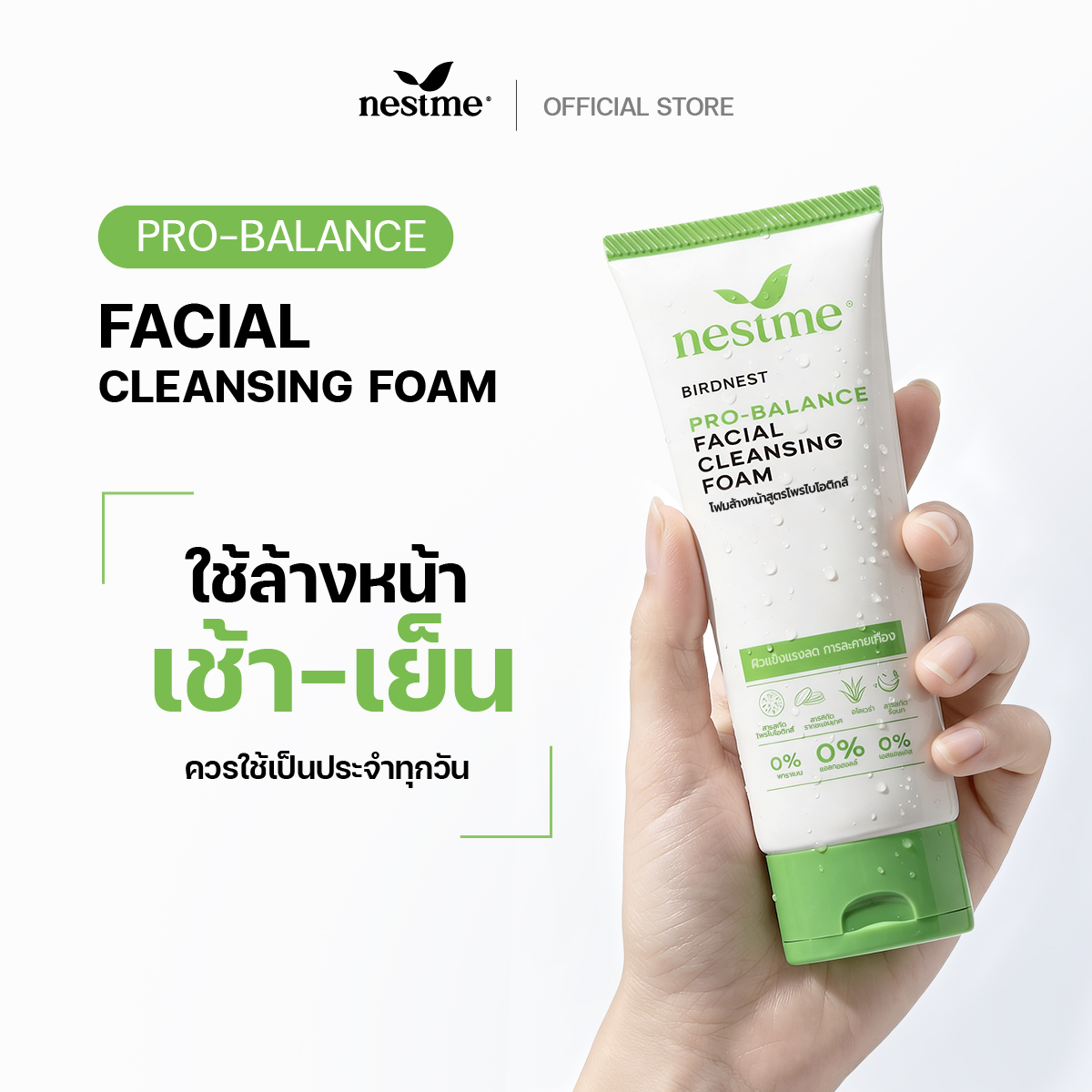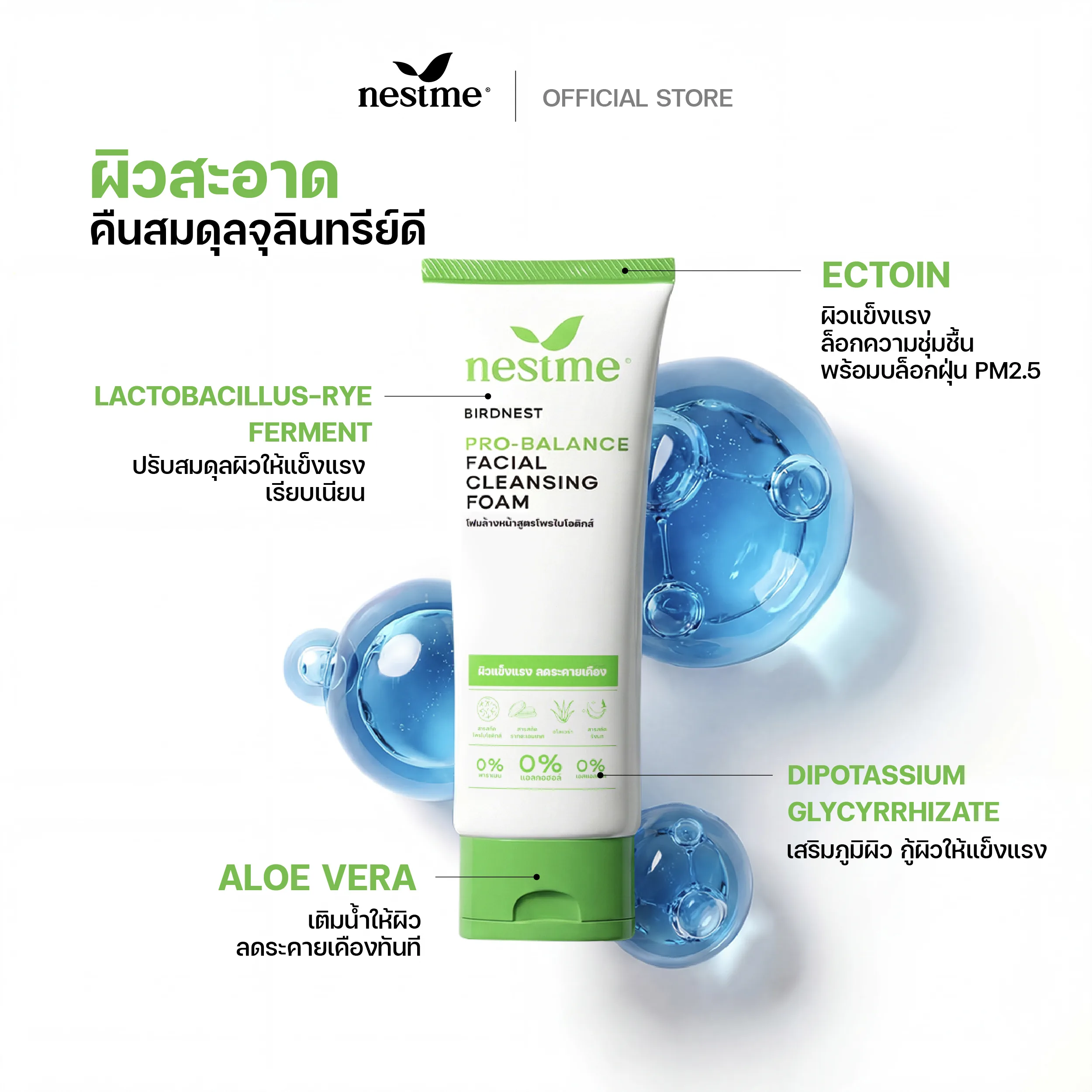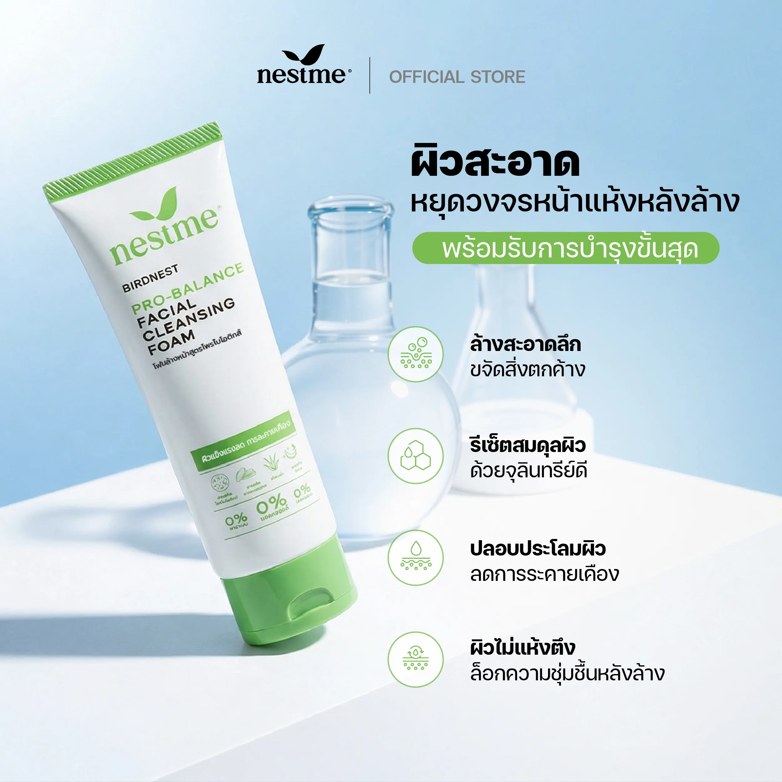 โฟมล้างหน้ารังนก ทำความสะอาดล้ำลึกขจัดสิ่งสกปรก อุดมไปด้วยคุณค่าจากโพรไบโอติกส์ แลคโตบาซิลลัส เฟอร์เมนต์ ช่วยปรับสมดุลบนผิว พร้อมฟื้นฟูบำรุงผิวให้แข็งแรง